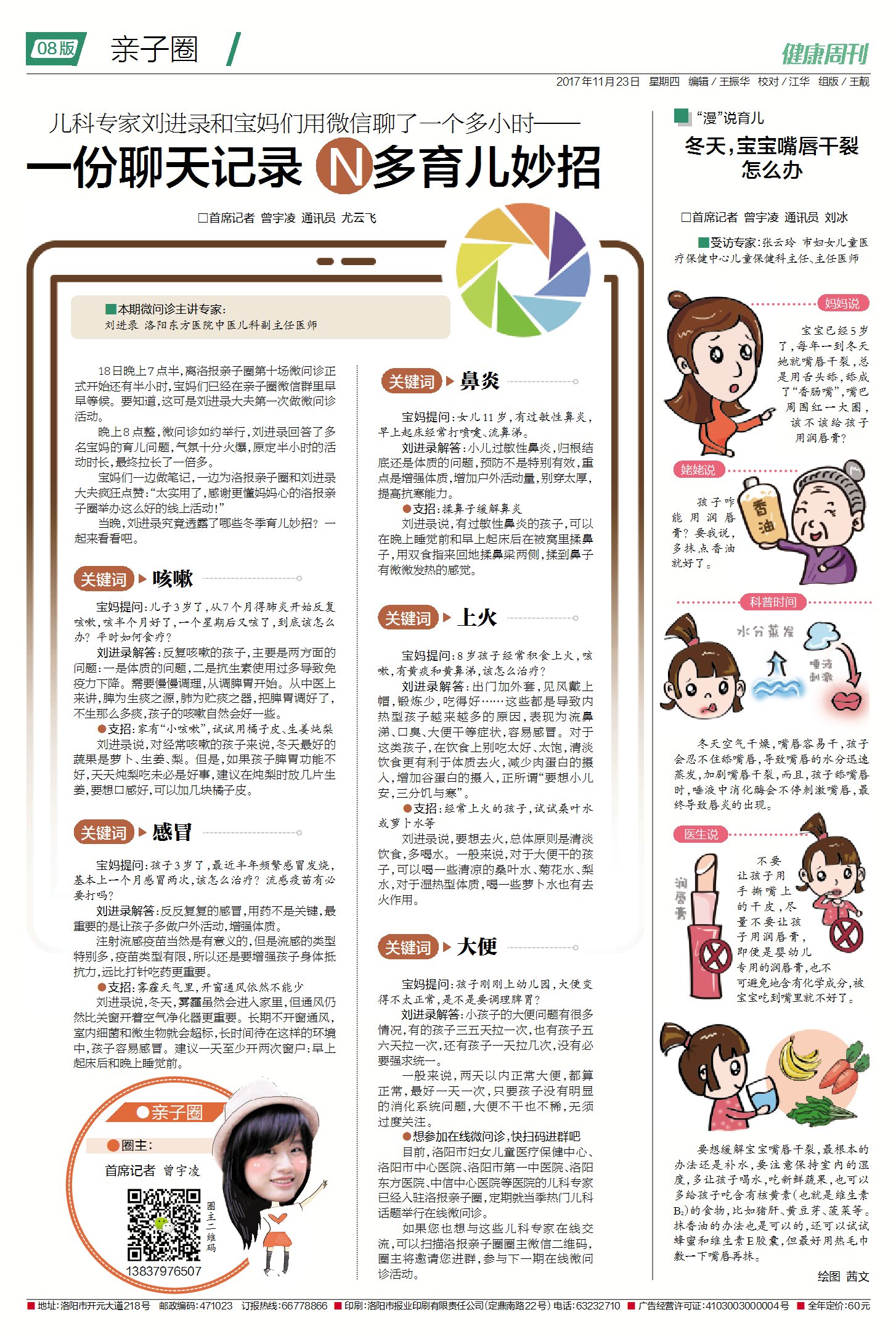 当晚报记者找到刘进录大夫的时候,已经是晌午时分,看到桌子上的还有厚厚一摞的病历本就知道又要连续工作到下午了。“刘老师,打扰您一分钟,因为有很多宝妈离洛阳东方医院比较远,我们想邀请您给这些宝妈们在微信圈里做一次健康讲堂,可以吗?”摘下老花镜的刘主任微笑的从抽屉里拿出了一张自己的名片,“这上面有我的电话,我眼睛老花了,我看不清手机上的字,现在外面还有很多孩子等着看病,您晚上8:00左右给我打电话,我全力配合,谢谢……”
