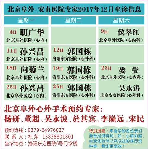 洛阳东方医院心脏病治疗中心:自即日起为0至14周岁的先天性心脏病患儿手术治疗,不分农村户口还是城市户口。