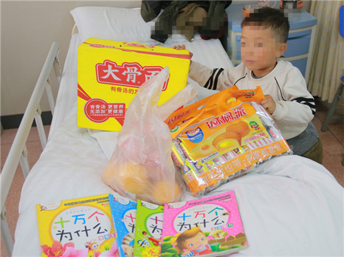 患儿不仅顺利的入院接受了治疗,他的病情和家境也牵动着医院诸多同事,大家纷纷地为小小蒙送来了衣物、图书、零食、玩具;护士长在家熬好的排骨汤;护士送来的小米粥;在住院费用清单上你送来50,我送来100…….大家用着一点一滴爱暖化着小小蒙童真的小心灵……
