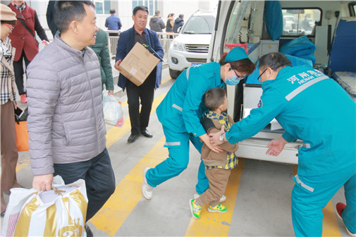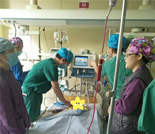 为了给患儿省去往返的车程费用,心外科CCU主任张文刚联系到急诊科医务人员通过近一个半小时的车程跑到当地,把小小蒙及家人接到医院接受治疗。