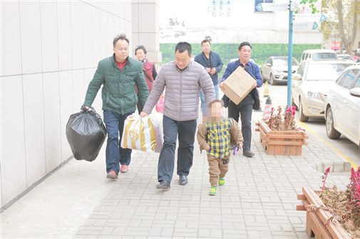 手术治疗后,医务人员送小小蒙回家