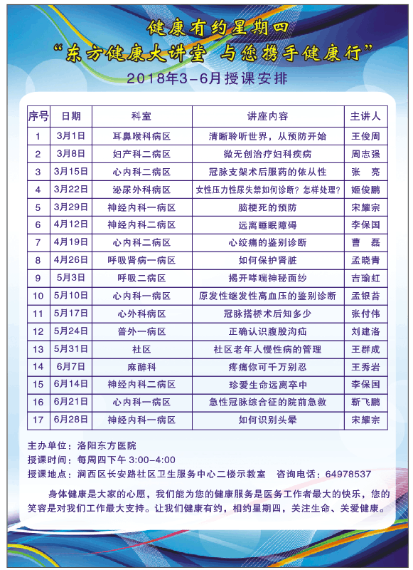 想现场与专家互动,敬请关注《健康有约星期四》,他们都是各专业的技术精英,其中也有泌尿外科的“帅锅儿”——姬俊鹏医生,面对面为大家讲解《女性压力性尿失禁如何诊断?怎样处理?》,约起来吧。