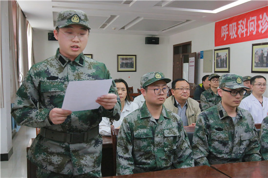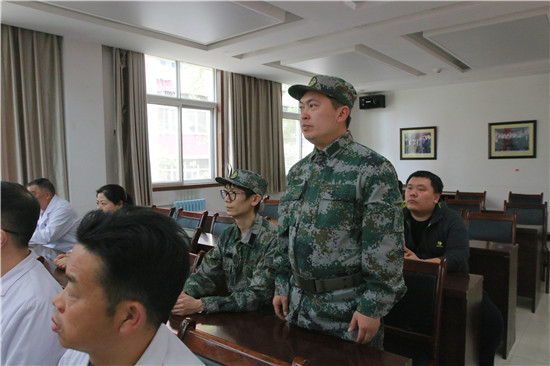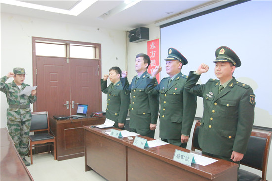 洛阳东方医院院长助理、民兵团政委胜涛宣布民兵组织编成及民兵干部任命,在雄壮的《中国人民解放军军歌》声中全体民兵宣誓,点验工作拉开序幕,杨军武科长呼点提问,民兵个个气势高昂,一声赛过一声的“到”展示出医院民兵队伍的良好素质,准确果断的提问应答显示出医院领导对民兵工作的重视。集团公司武装部政委赵林对民兵工作做了会议讲话,全体民兵统一宣誓,民兵代表作表态发言。