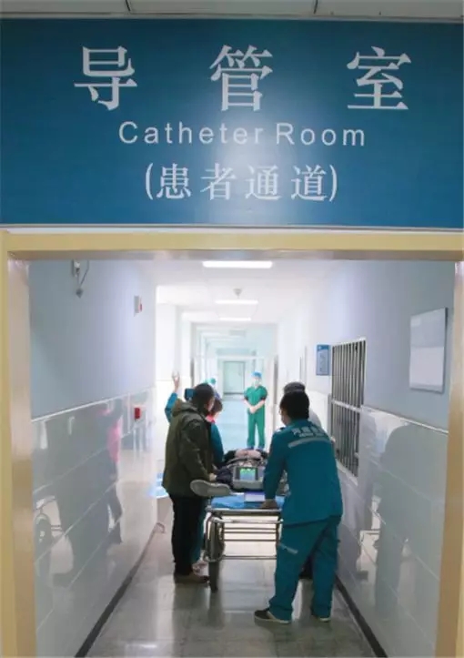 17时46分,患者安全到达医院后,医护人员绕行急诊、CCU,经医院胸痛中心绿色通道将王阿姨直接送入导管室。