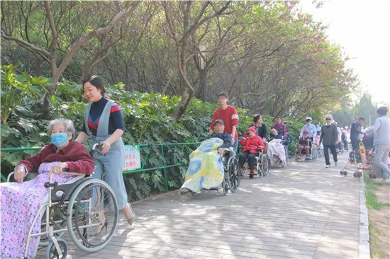 4月16日,洛阳东方医院老年照护中心组织失能老人到牡丹公园游园踏青,享受春意般的阳光温暖。