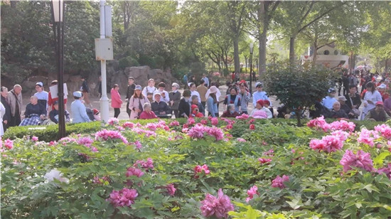 牡丹公园赏花行,牡丹芬芳,香气浓郁。老人们在公园里听戏看舞,欣赏着美丽的自然风光。满头银发的老人们和大家一起感受春天的气息,开阔心情,纷纷拿出相机合影留念,80多岁的张奶奶说:“我的腿不好,平时也不想出门,今天你们带着我们出来玩,真是太开心了,辛苦了。”