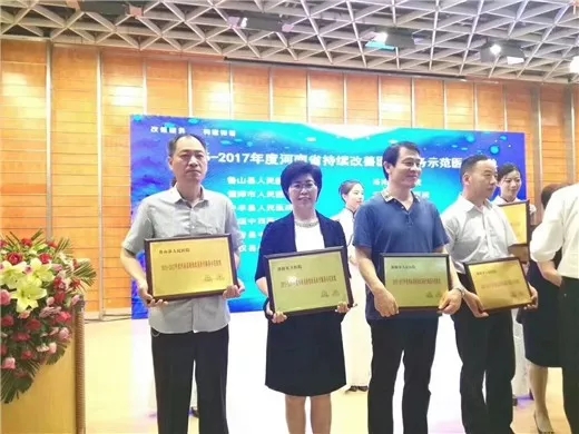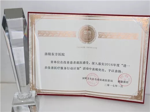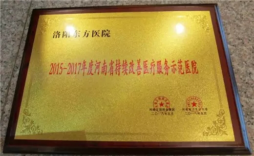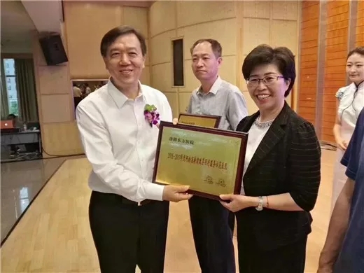 洛阳东方医院喜获“2015—2017年度河南省持续改善医疗服务示范单位”荣誉称号,党委书记、院长杨黎红参加了会议并接受表彰。