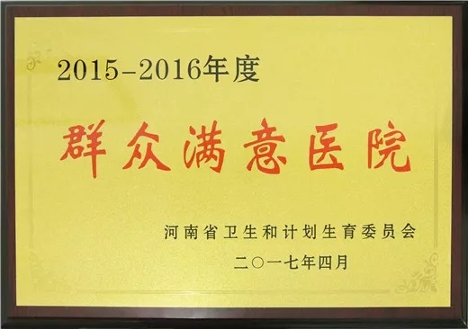 医院先后被评为:“河南省群众百姓满意医院”、“全国改善医疗服务示范医院”、“全国百姓放心百佳示范医院”、“全国百家改革创新医院”、“河南省医院管理先进单位”等荣誉称号。